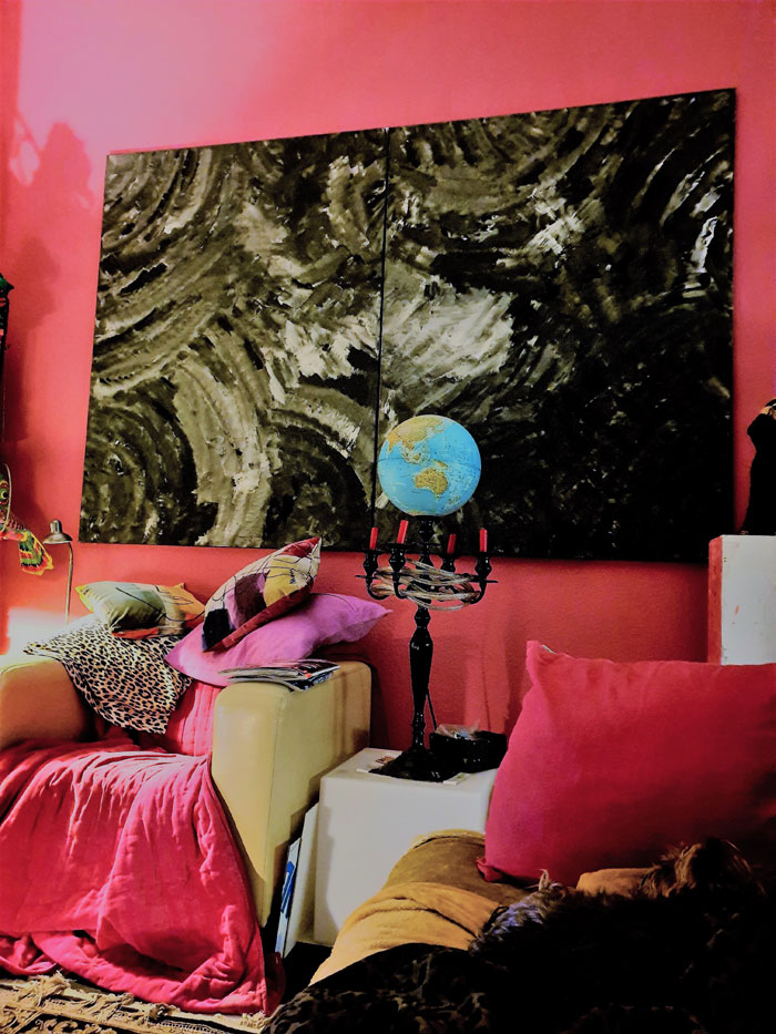auf bemalten Farbkissen Ihre melancholischen Fotografien.