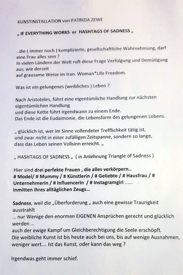 | 21. november 2022 "if everything works" installation galerie in der trinkkuranlage bad nauheim 19.11. bis 23.12.2022 ![]() ![]() ![]() ![]() ![]() ![]() ![]() ![]() ![]() |